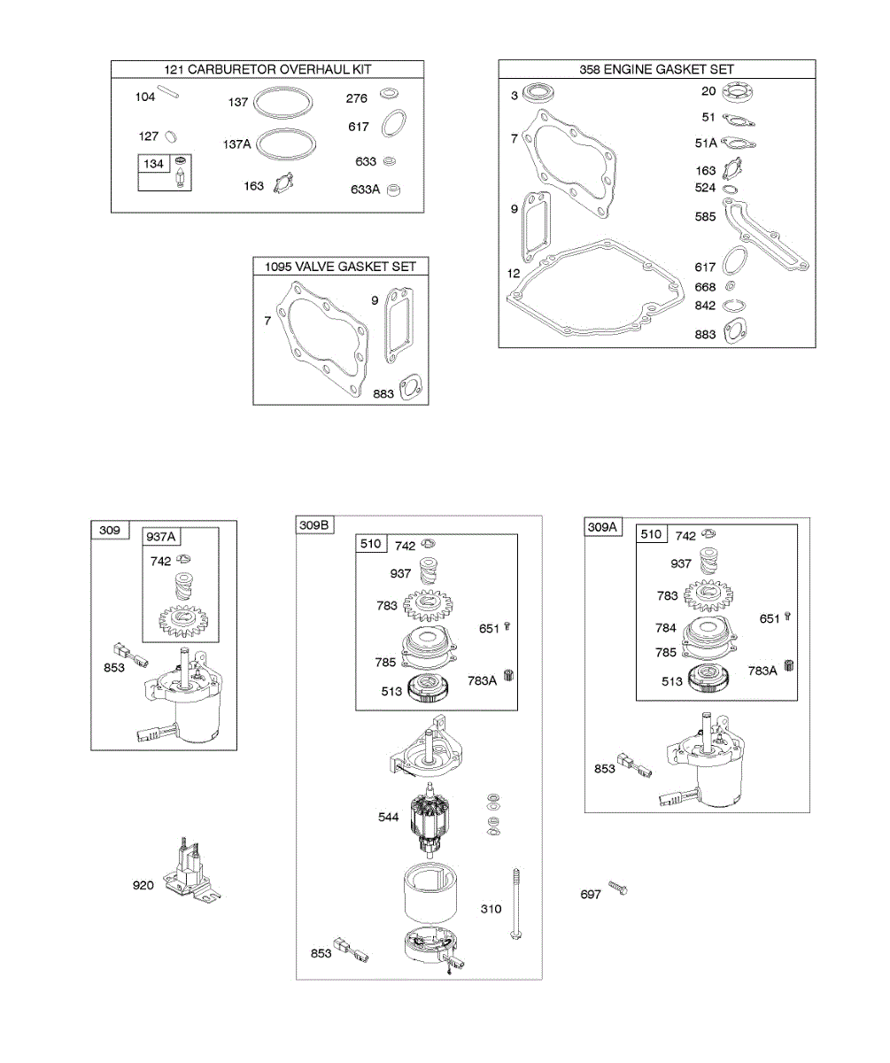 Parts for Briggs & Stratton 124T02-0246-B1: Engine, Valve, & Carburetor Kits, Rewind Starter Parts