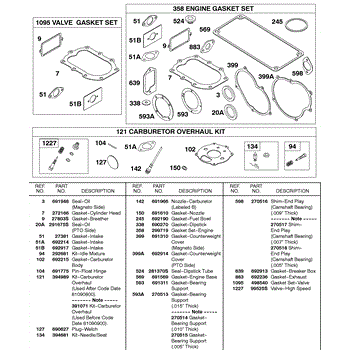 Parts for Briggs & Stratton 326431-0212-99: Engine / Valve / Carburetor Gasket Sets Parts