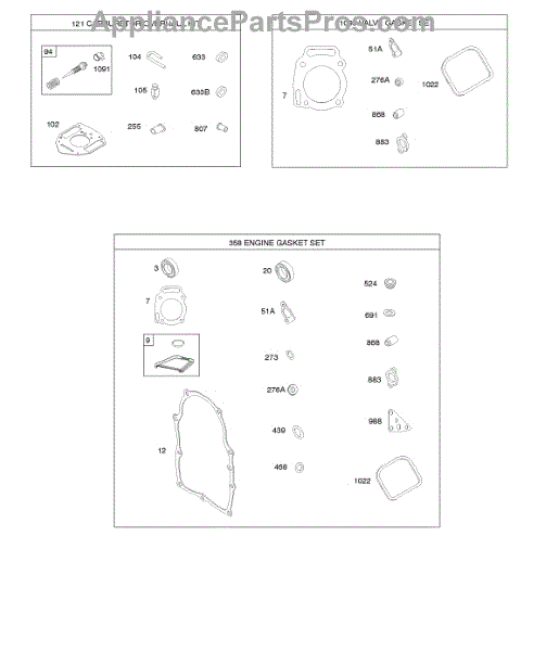 Parts for Briggs & Stratton 296442-0005-H1: Engine / Valve Gasket Sets, Carburetor Overhaul Kit Parts