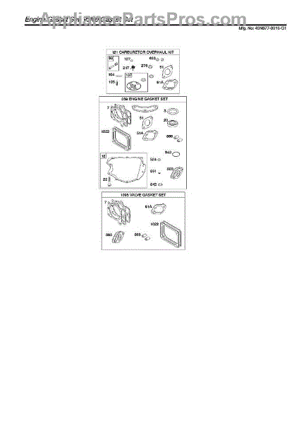 When the fuel in a small, gasoline-powered engine moves up the fuel line, it must be mixed perfectly with air and together burn in just the right mixture and amount in order for engines to function properly. Because too much gas might be coming into the carburetor or because there might be a need for more gasoline than can readily move up the fuel line, the carburetor has a small device called the float bowl. The float bowl has a ready supply of gasoline for use as needed by the carburetor. To keep the gasoline in check while all this is happening, a device called the float bowl gasket keeps all the elements separate. With use and age, sometimes these gaskets crack or grow brittle and must be replaced. This causes air to leak into the mix and the engine will not operate smoothly. Replace this gasket with a genuine OEM replacement part like this one, manufactured to be exactly like the factory original that is being replaced. This part is compatible with engines sold by Toro, Simplicity, MTD, Briggs & Stratton, and Cub Cadet. Part sold individually.