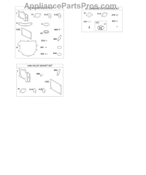 Parts for Briggs & Stratton 40R577-0009-H1: Engine / Valve Gasket Set, Carburetor Overhaul Kit Parts