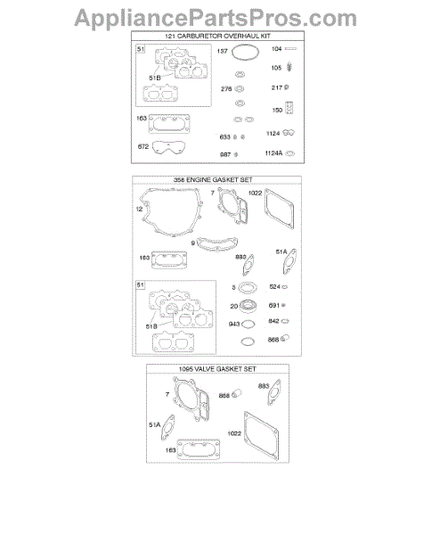 Parts for Briggs & Stratton 40R877-0025-B1: Engine / Valve Gasket Set, Carburetor Overhaul Kit Parts