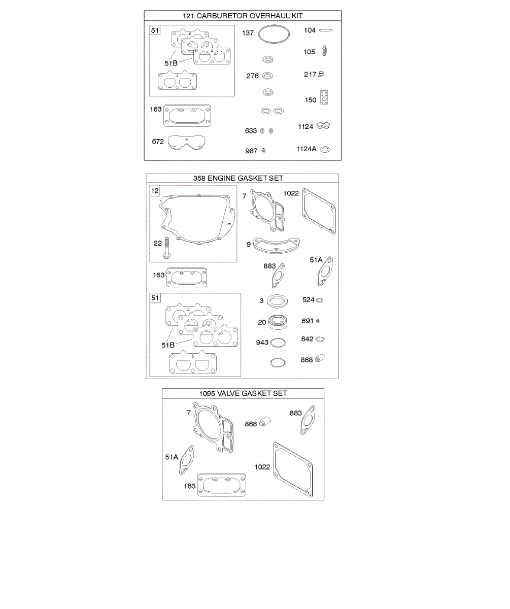 Parts for Briggs & Stratton 40S877-0007-G1: Engine / Valve Gasket Set, Carburetor Overhaul Kit Parts