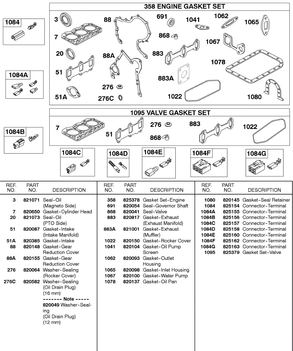 Parts for Briggs & Stratton 433447-0317-E2: Engine / Valve Gasket Sets, Terminal Connectors Parts