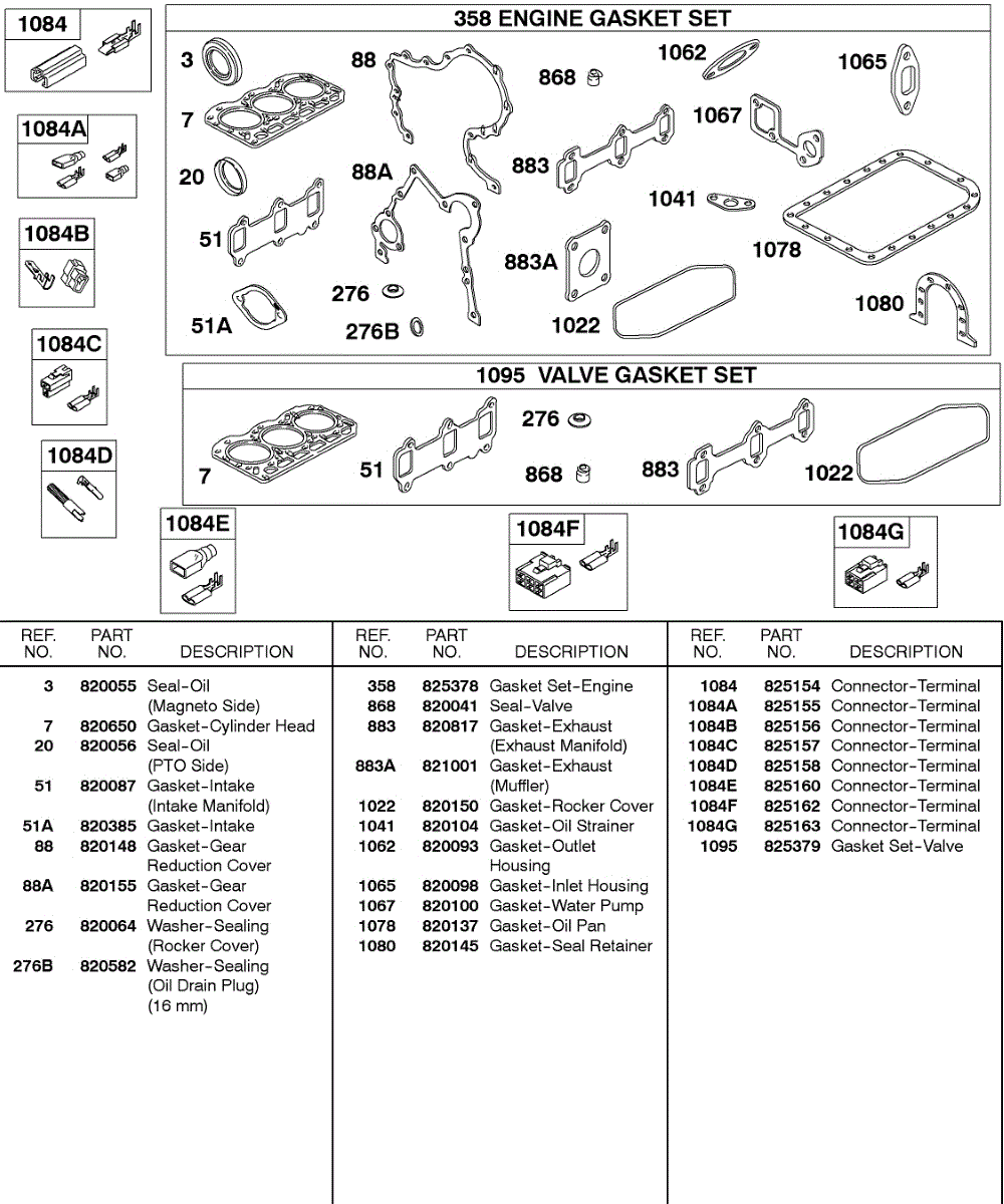 Parts for Briggs & Stratton 437447-0205-E2: Engine / Valve Gasket Sets, Terminal Connectors Parts