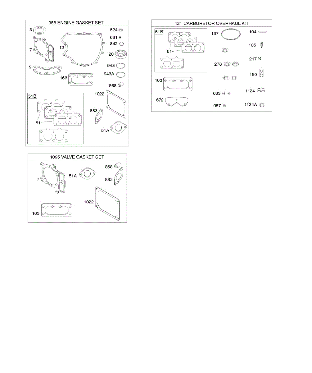 Parts for Briggs & Stratton 44M777-2169-G5: Engine / Valve Gasket Set, Carburetor Overhaul Kit Parts
