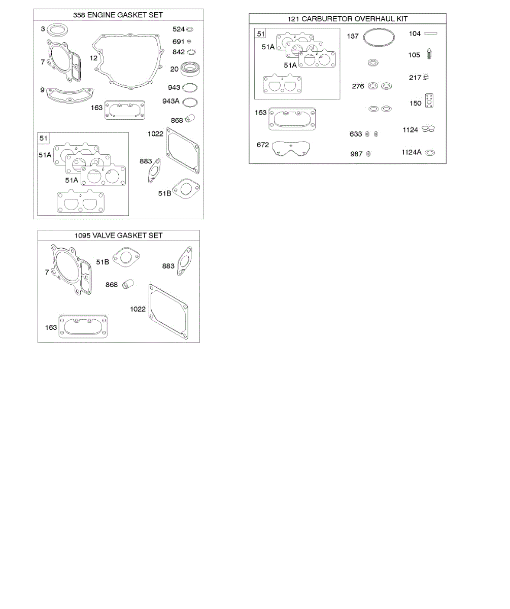 Parts for Briggs & Stratton 44Q777-1406-G1: Engine / Valve Gasket Set, Carburetor Overhaul Kit Parts