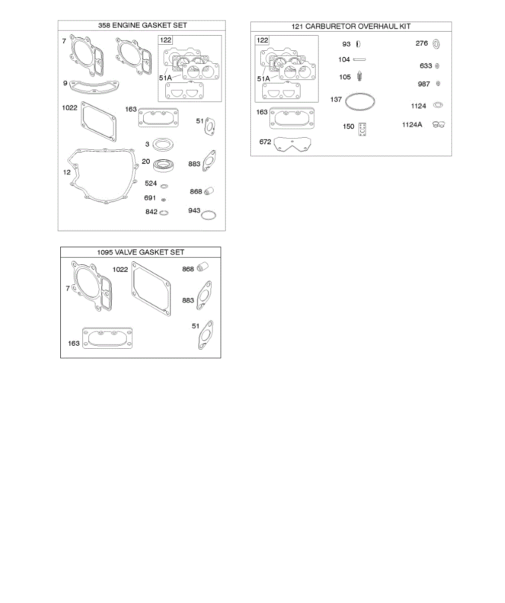 Parts for Briggs & Stratton 44T977-0013-G1: Engine / Valve Gasket Set, Carburetor Overhaul Kit Parts