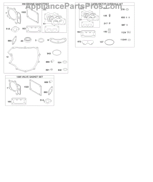Parts for Briggs & Stratton 49M877-0047-G1: Engine / Valve Gasket Set, Carburetor Overhaul Kit Parts