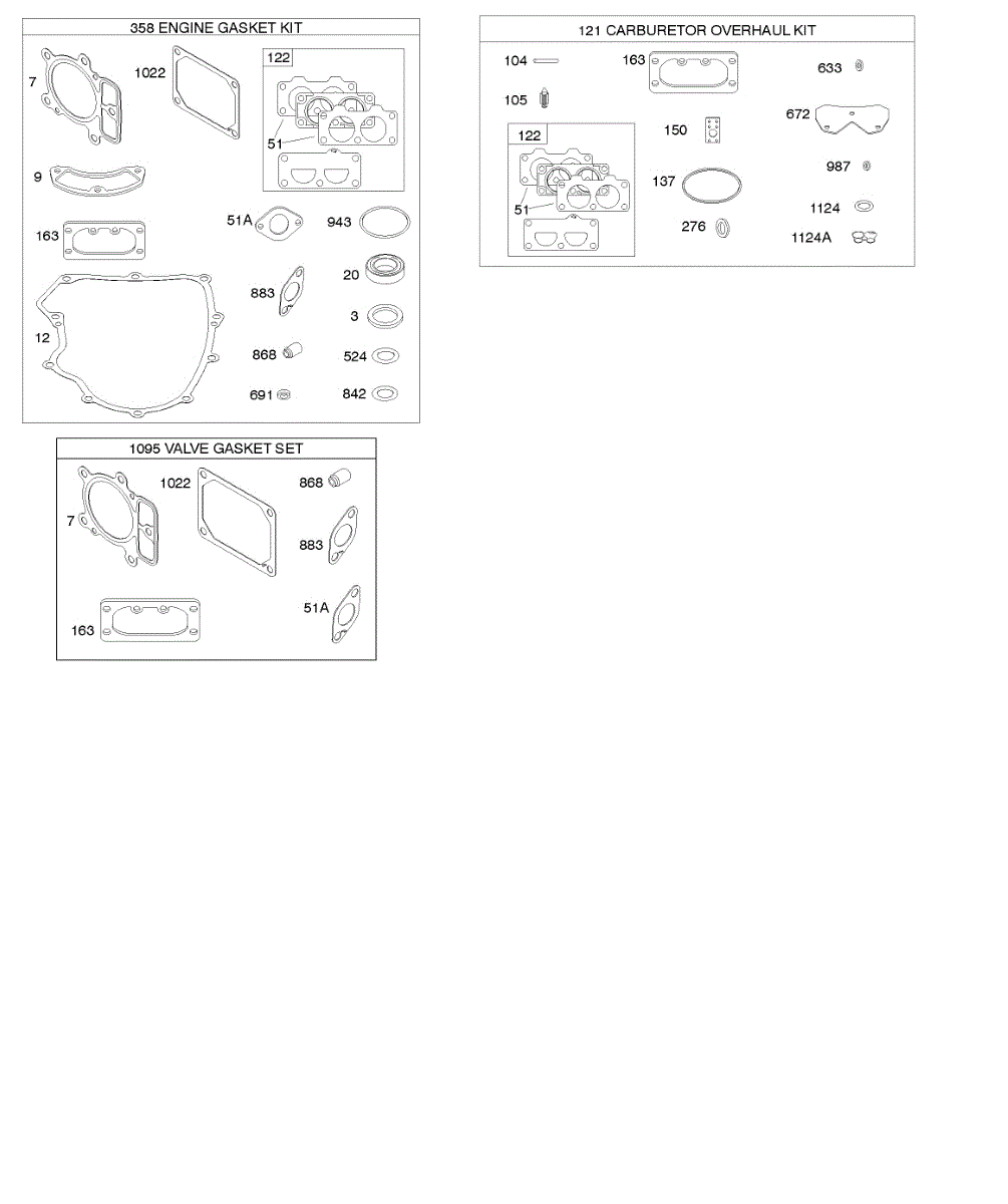 Parts for Briggs & Stratton 49M977-0001-G5: Engine / Valve Gasket Set, Carburetor Overhaul Kit Parts