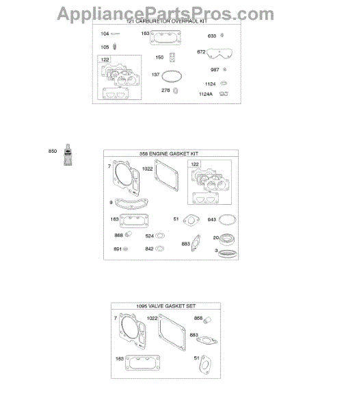 Parts for Briggs & Stratton 49R977-0005-G1: Engine / Valve Gasket Set, Carburetor Overhaul Kit Parts