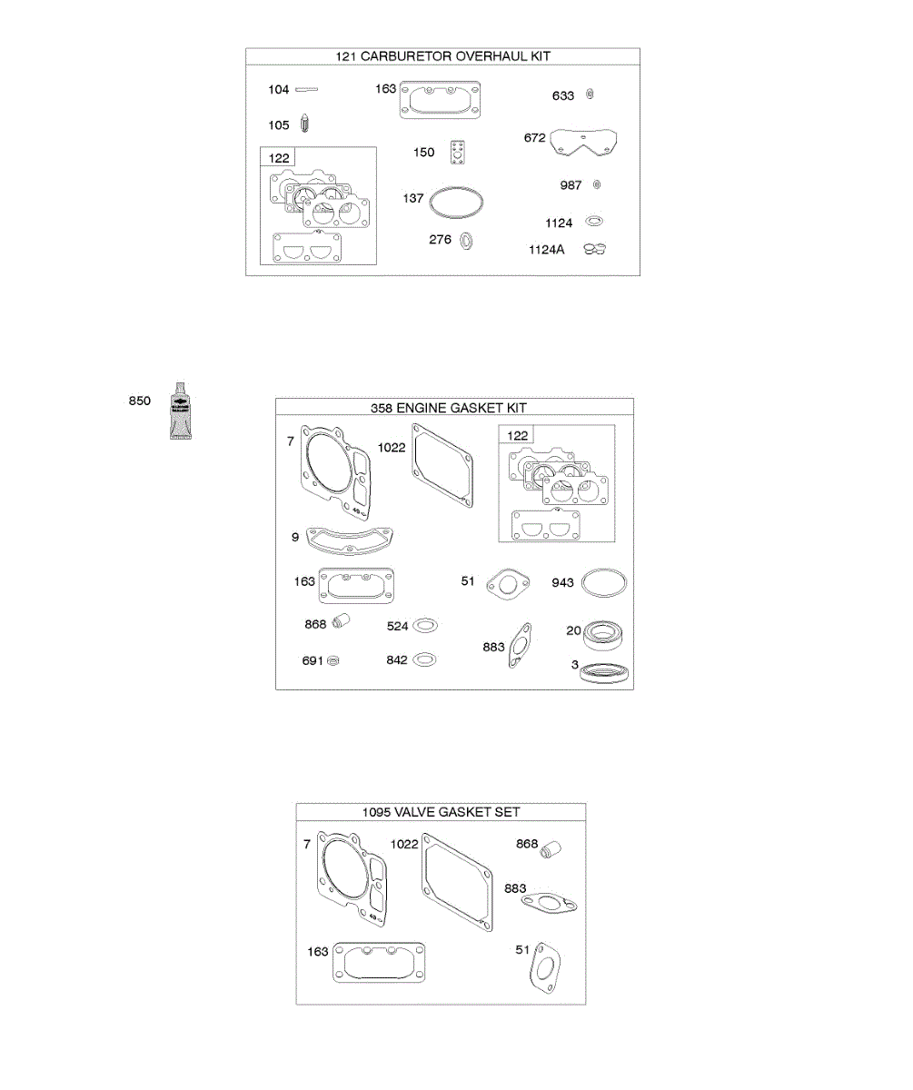 Parts for Briggs & Stratton 49R977-0006-G1: Engine / Valve Gasket Set, Carburetor Overhaul Kit Parts