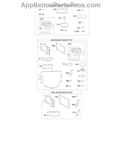 Parts for Briggs & Stratton 49S877-0005-G1: Engine / Valve Gasket Set, Carburetor Overhaul Kit Parts