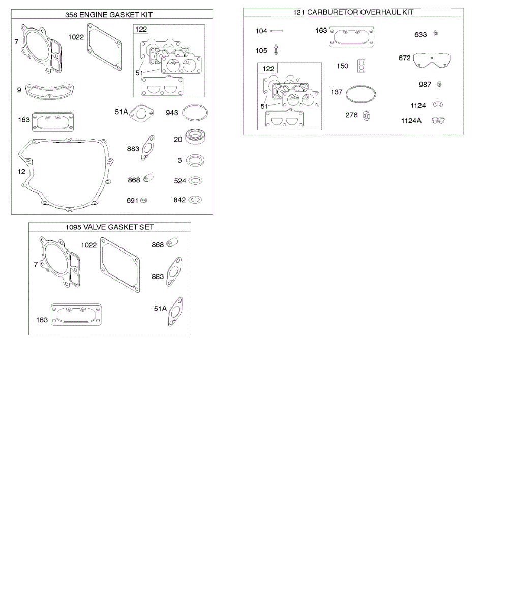 Parts for Briggs & Stratton 49T777-0001-G1: Engine / Valve Gasket Set, Carburetor Overhaul Kit Parts