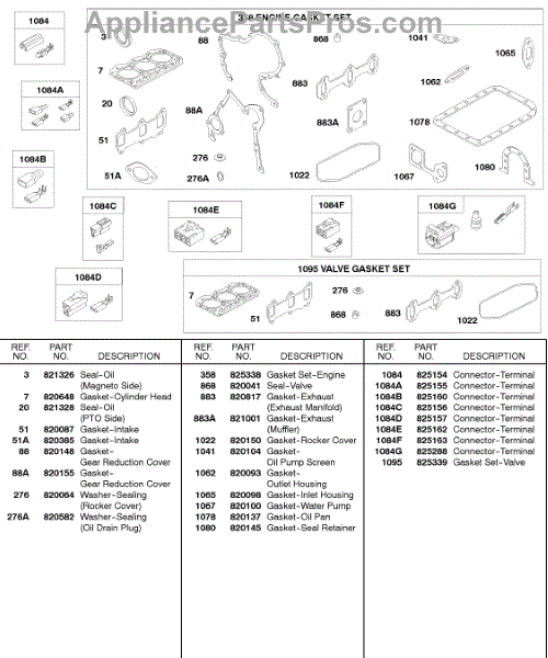 Parts for Briggs & Stratton 584447-0205-E2: Engine / Valve Gasket Sets, Terminal Connectors Parts