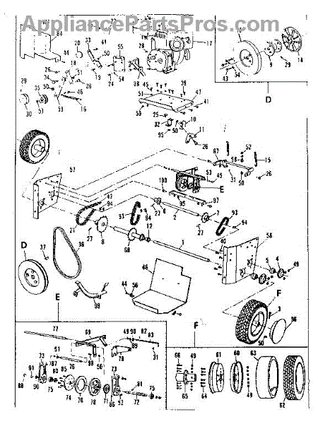 Parts for Craftsman 53682240: Engine And Wheel Assembly Parts