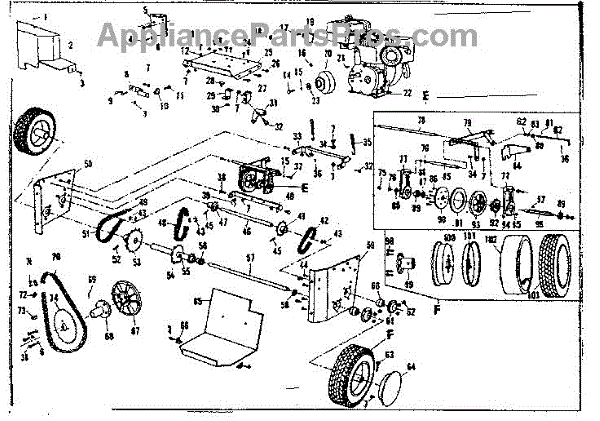 Parts for Craftsman 53682565: Engine And Wheel Assembly Parts