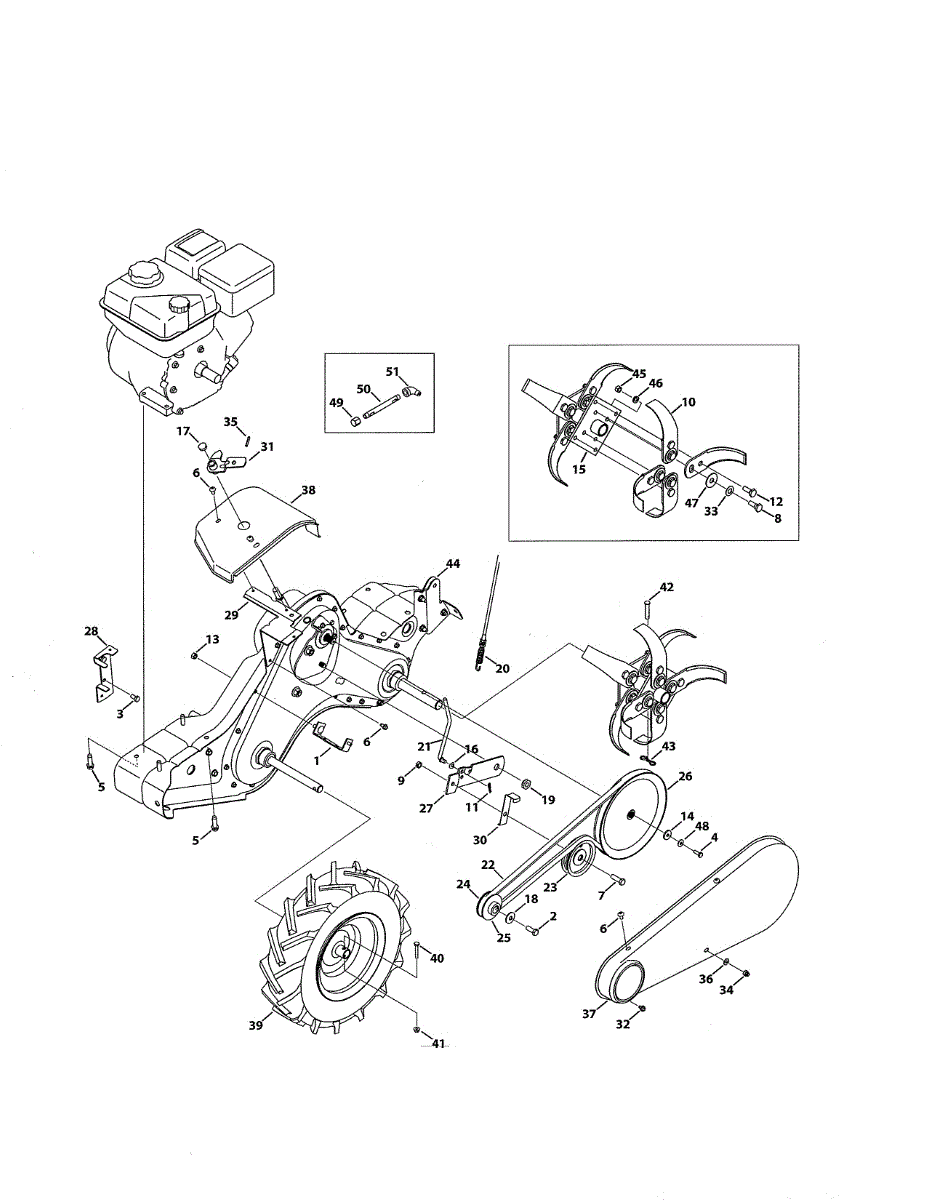 Tiller won't engage or belt slips? This engine pulley outer half works with the inner half to drive the tines. Moderate DIY repair for tillers.