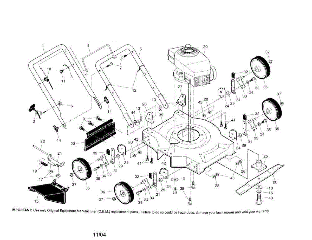 Replacement discharge guard for walk-behind lawn mowers. Shields discharge chute opening. Replace if cracked, broken, or missing for safe operation.