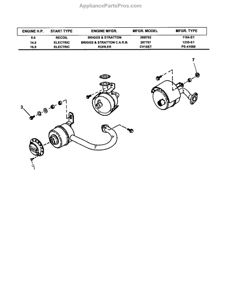 Parts for Snapper 3314522BVE: Engines & Exhaust Muffler Parts