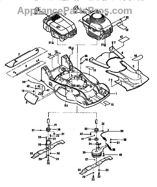 Parts for Troy-Bilt 34020: Engines, Mower Deck And Blade Assemblies Parts