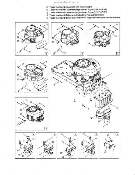 Exhaust muffler for lawn mowers and tractors. Reduces engine noise during operation. Replace if cracked, rusted, or excessively loud from wear or damage.