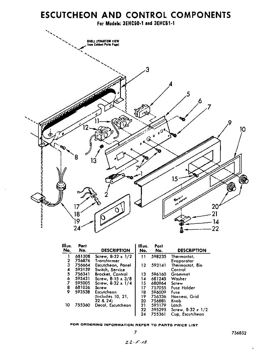 Parts for Whirlpool 3EHC511: 07 - Escutcheon And Control Parts