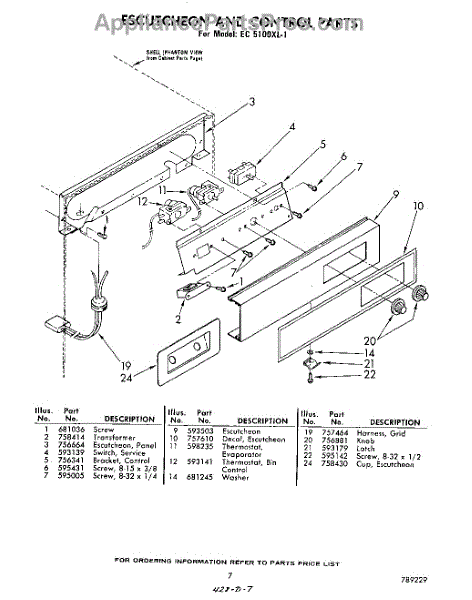 Parts for Whirlpool EC5100XL1: 07 - Escutcheon And Control Parts