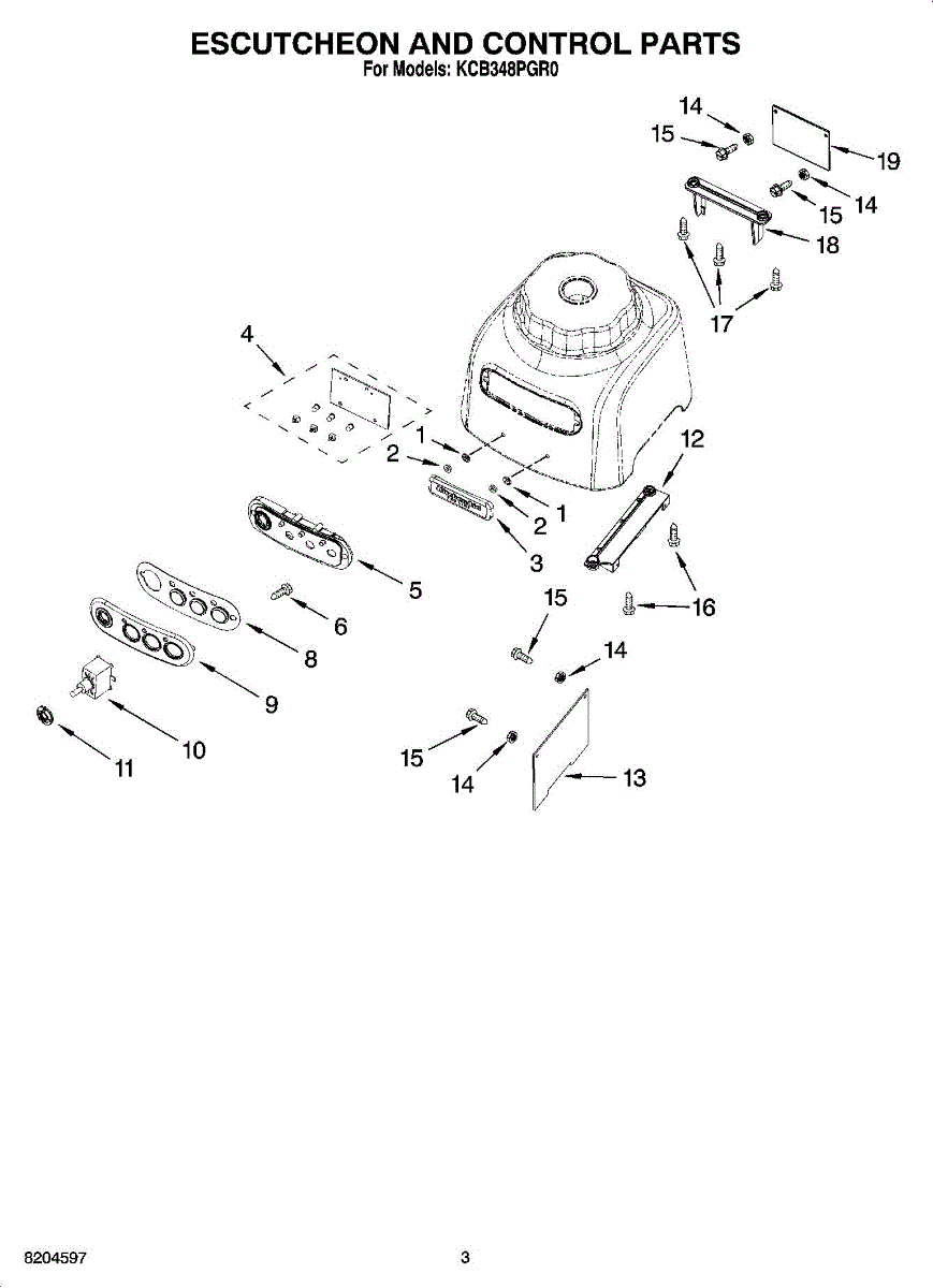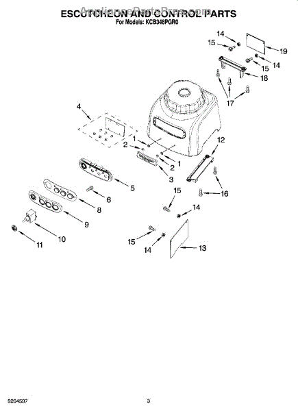 Parts for Kitchenaid KCB348PGR0: 03 - Escutcheon And Control Parts