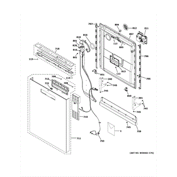 The Door Harness Assembly is an OEM part for GE dishwashers. It routes power to key sensors and components located on the dishwasher door, including the door latch and interior lighting system.