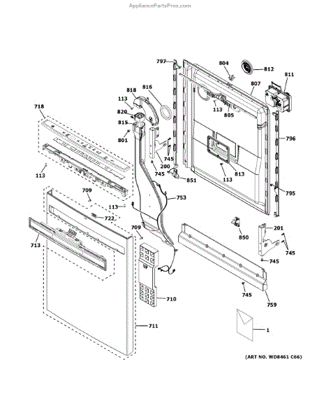 The Inner Door Panel is an OEM part for GE dishwashers. It serves as the inner lining of the dishwasher door, ensuring a watertight seal and supporting components like the detergent dispenser and vent assembly.