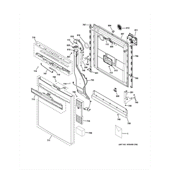 The Inner Door Panel is an OEM part for GE dishwashers. It serves as the inner lining of the dishwasher door, ensuring a watertight seal and supporting components like the detergent dispenser and vent assembly.