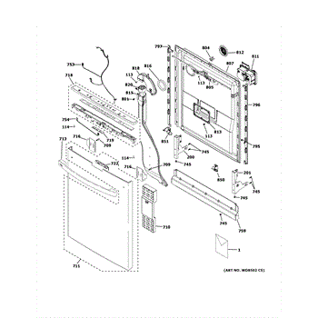 Fix dishwasher control panel with no lights or unresponsive buttons. This door wiring harness connects power to controls, latch, and lighting components.