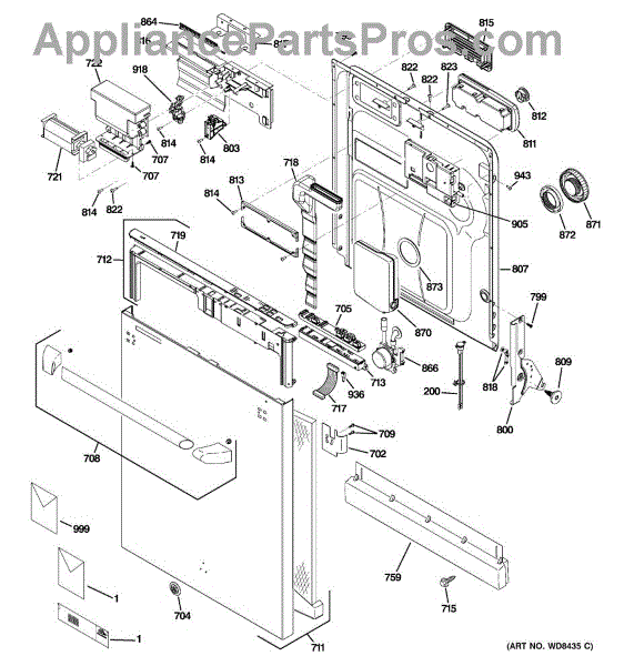 The Detergent and Rinse Aid Dispenser is an OEM part for GE dishwashers. It is responsible for holding and releasing detergent and rinse aid during the dishwashing cycle, ensuring that dishes are cleaned and rinsed effectively.