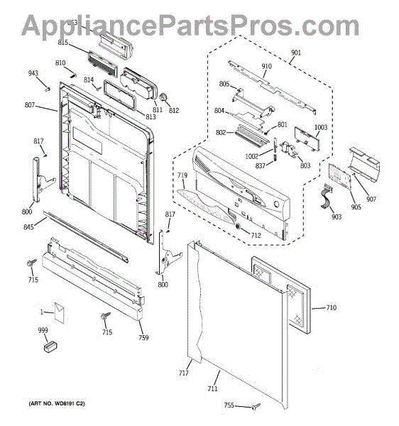 The GE latch handle is an OEM replacement part responsible for allowing the opening and closing of the dishwasher door. Located on the inner door panel, this part ensures that the dishwasher door latches securely when the machine is in operation, preventing any leaks or disruptions in the cleaning process. Additionally, it provides a convenient means for users to open and close the dishwasher, allowing easy access to load and unload dishes. This GE part can also be used on Hotpoint, RCA, and Kenmore/Sears appliances. This part fixes the following symptoms