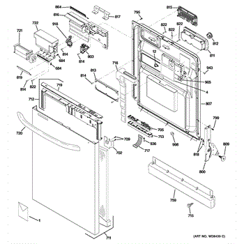 The Detergent and Rinse Aid Dispenser is an OEM part for GE dishwashers. It is responsible for holding and releasing detergent and rinse aid during the dishwashing cycle, ensuring that dishes are cleaned and rinsed effectively.