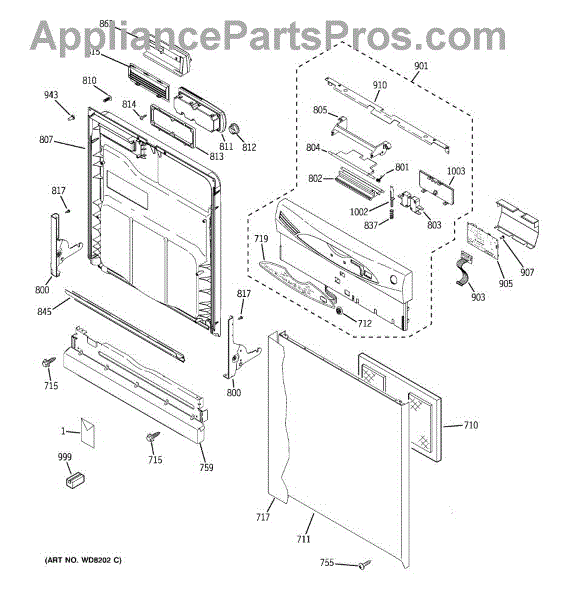 Parts for Ge GHD6310N10SS: 01 - Escutcheon & Door Assembly Parts