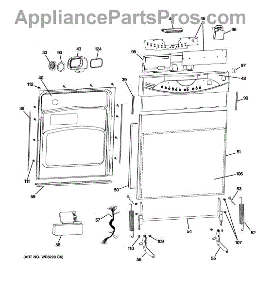 This is a hinge spring. This piece applies tension when opening and closing a dishwasher door. The hinge spring prevents the from door dropping too quickly and hitting the ground when the machine is opened. This hinge also ensures that the door is completely shut and that there are no leaks during the washing cycle.If the door frequently falls open, will not stay closed, or will not latch this part may need to be replaced. The repair is fairly easy, but care should be taken because the hinge holds tension and may snap while being replaced. Keep in mind many dishwashers have springs on both sides of the door, so make sure to verify if the machine needs one or two replacements. This is an OEM part sourced directly from the manufacturer. It is sold individually. This part is compatible with machines from manufacturers like General Electric and their brands Hotpoint, and RCA.