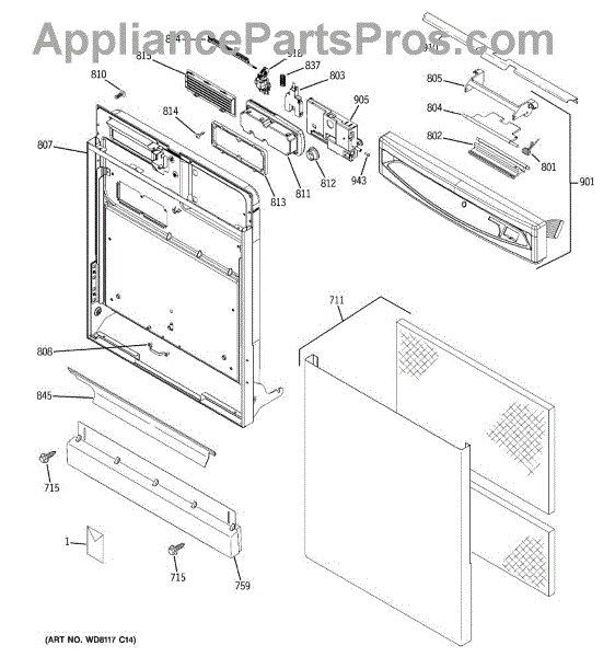 Parts for Ge GHDA980K10WW: 01 - Escutcheon & Door Assembly Parts