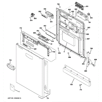 The Detergent and Rinse Aid Dispenser is an OEM part for GE dishwashers. It is responsible for holding and releasing detergent and rinse aid during the dishwashing cycle, ensuring that dishes are cleaned and rinsed effectively.