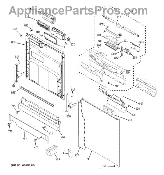 Parts for Ge GLC4100N10WW: 01 - Escutcheon & Door Assembly Parts