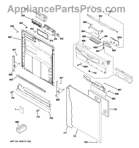 The GE latch handle is an OEM replacement part responsible for allowing the opening and closing of the dishwasher door. Located on the inner door panel, this part ensures that the dishwasher door latches securely when the machine is in operation, preventing any leaks or disruptions in the cleaning process. Additionally, it provides a convenient means for users to open and close the dishwasher, allowing easy access to load and unload dishes. This GE part can also be used on Hotpoint, RCA, and Kenmore/Sears appliances. This part fixes the following symptoms