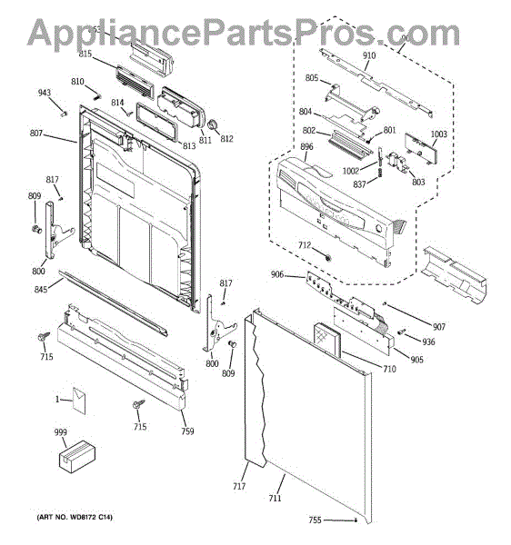 The GE latch handle is an OEM replacement part responsible for allowing the opening and closing of the dishwasher door. Located on the inner door panel, this part ensures that the dishwasher door latches securely when the machine is in operation, preventing any leaks or disruptions in the cleaning process. Additionally, it provides a convenient means for users to open and close the dishwasher, allowing easy access to load and unload dishes.
