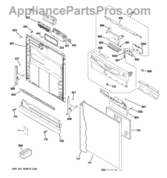 The GE latch handle is an OEM replacement part responsible for allowing the opening and closing of the dishwasher door. Located on the inner door panel, this part ensures that the dishwasher door latches securely when the machine is in operation, preventing any leaks or disruptions in the cleaning process. Additionally, it provides a convenient means for users to open and close the dishwasher, allowing easy access to load and unload dishes. This GE part can also be used on Hotpoint, RCA, and Kenmore/Sears appliances. This part fixes the following symptoms