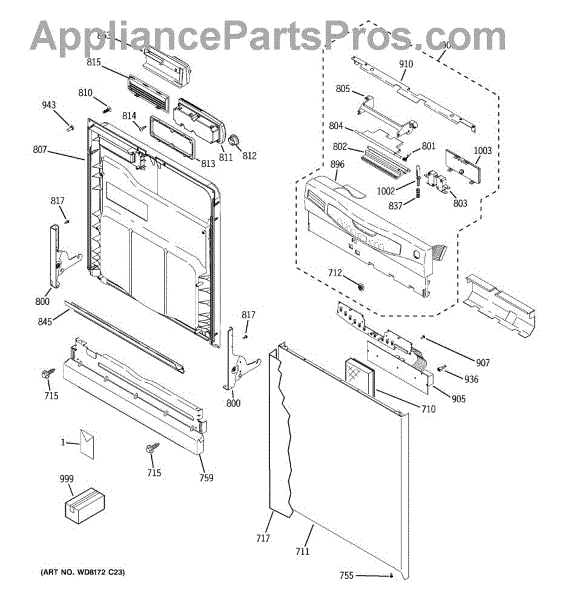 The GE latch handle is an OEM replacement part responsible for allowing the opening and closing of the dishwasher door. Located on the inner door panel, this part ensures that the dishwasher door latches securely when the machine is in operation, preventing any leaks or disruptions in the cleaning process. Additionally, it provides a convenient means for users to open and close the dishwasher, allowing easy access to load and unload dishes.