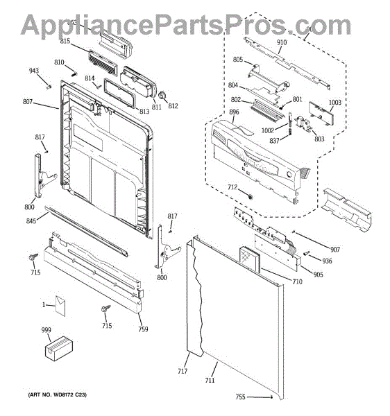 Parts for Ge GLD4950P00CS: 01 - Escutcheon & Door Assembly Parts