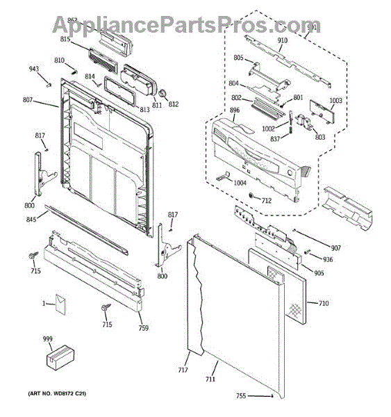 Parts for Ge GLD5900N10WW: Escutcheon & Door Assembly Parts