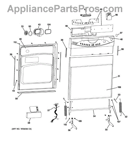 The Door Hinge Spring is an OEM part for GE dishwashers. It provides the necessary tension to support and balance the dishwasher door, allowing it to open and close smoothly and stay in the desired position during loading and unloading.