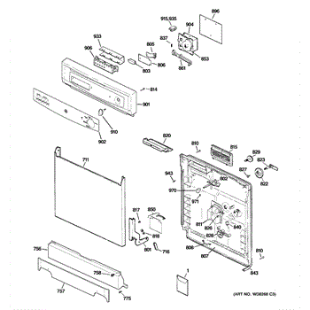 The Fill Cap Assembly is an OEM part for GE dishwashers. This assembly includes the cap that covers the opening where rinse aid or other additives are poured into the dishwasher. It ensures that the additives are securely contained and properly dispensed during the wash cycles, contributing to effective cleaning and drying.