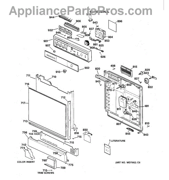 Parts for Ge GSD1430X66WW: 01 - Escutcheon & Door Assembly Parts